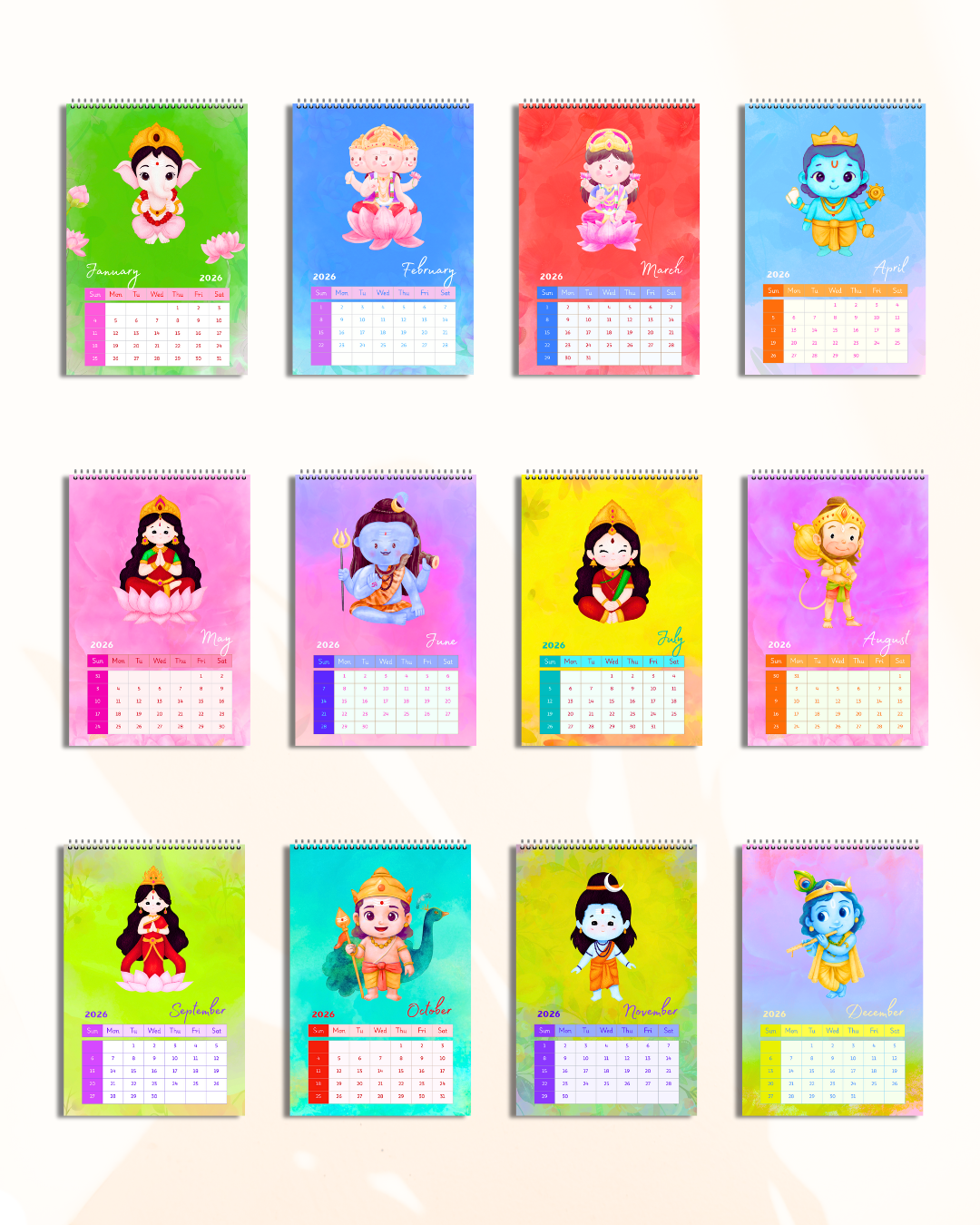 Get ready for the New year with this pretty calendar, filled with vibrant and super cute baby gods. Each month is designed in a different style which means you get to switch it up every 4 weeks!
